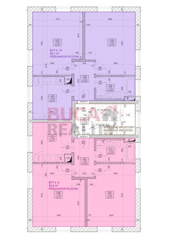 Byt o dispozici 2+1 a výměře 55.5 m2 s terasou o výměře 56 m2 se skládá́ z prostorné́ chodby, obývacího pokoje, ložnice, koupelny s WC a kuchyně, která je vybavena moderními vestavenými spotřebiči (sklokeramická́ deska, trouba, digestoř̌). K bytu je možnost pronajmout parkovací stání přímo u domu, které je hlídané kamerovým systémem.